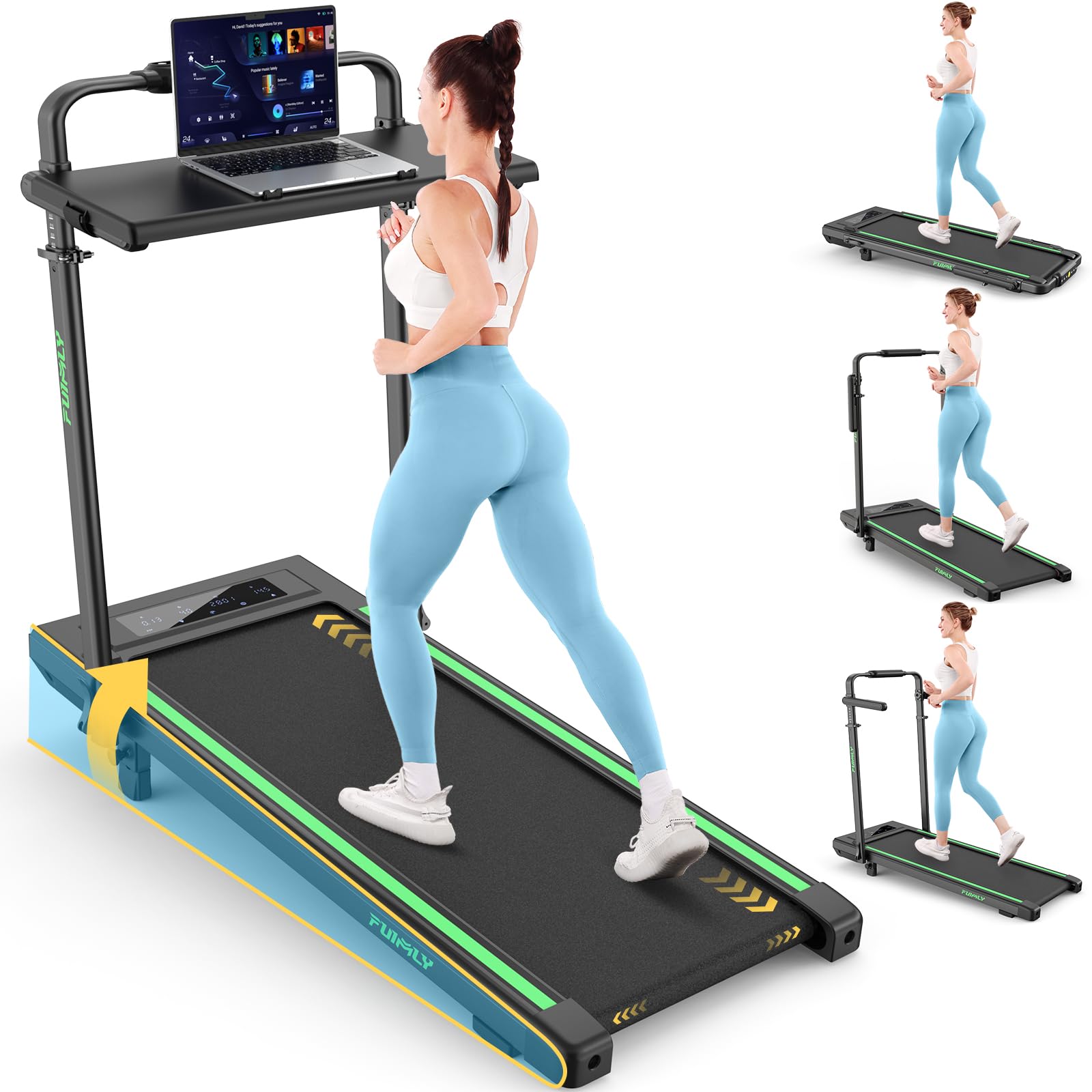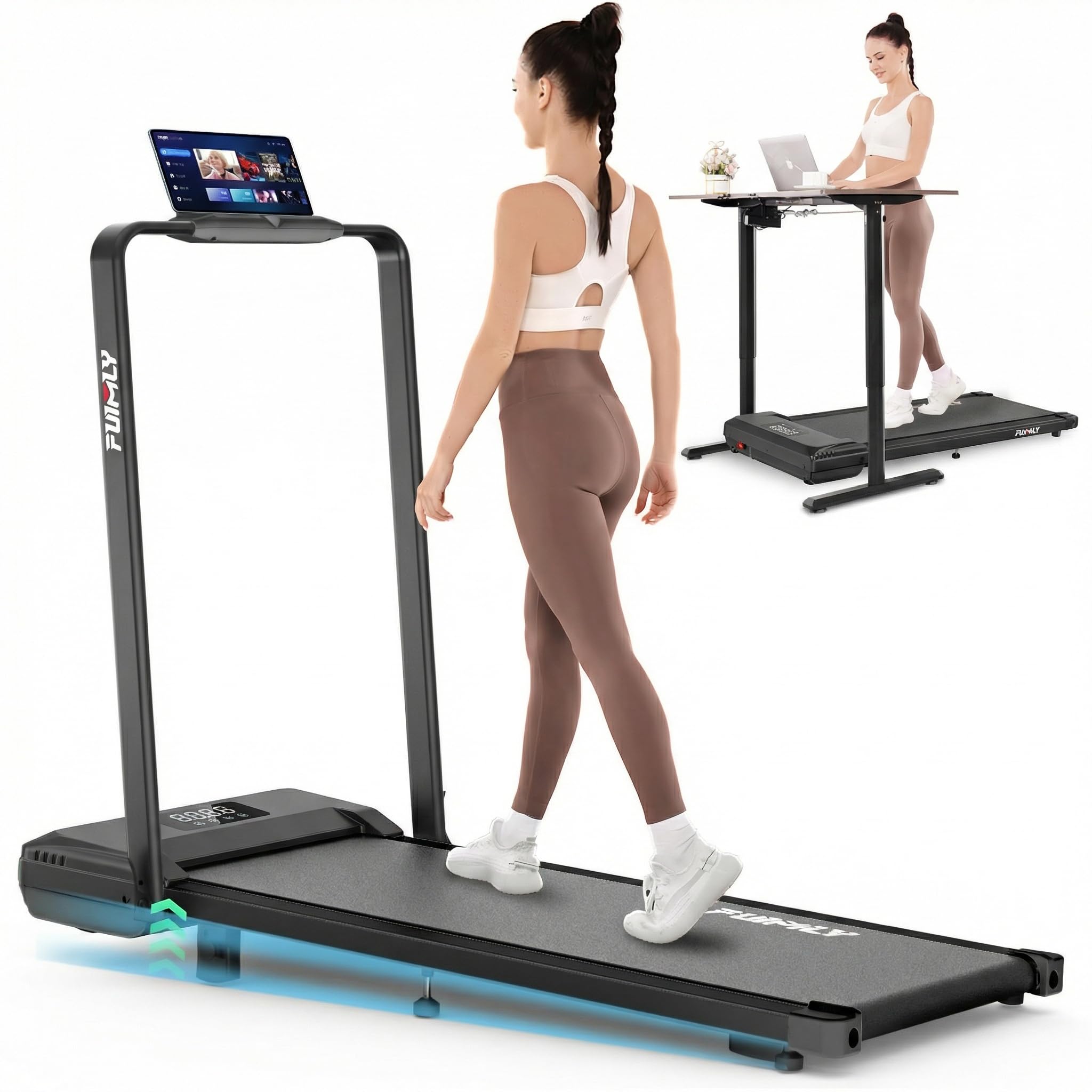 FUNMILY Upgrade Walking Pad Folding Treadmill with 12%/15% & Handle Bar, 3.5HP Foldable Under Desk Compact Treadmills for Home/Office/Gym, 400+lb Capacity, Shock Absorption