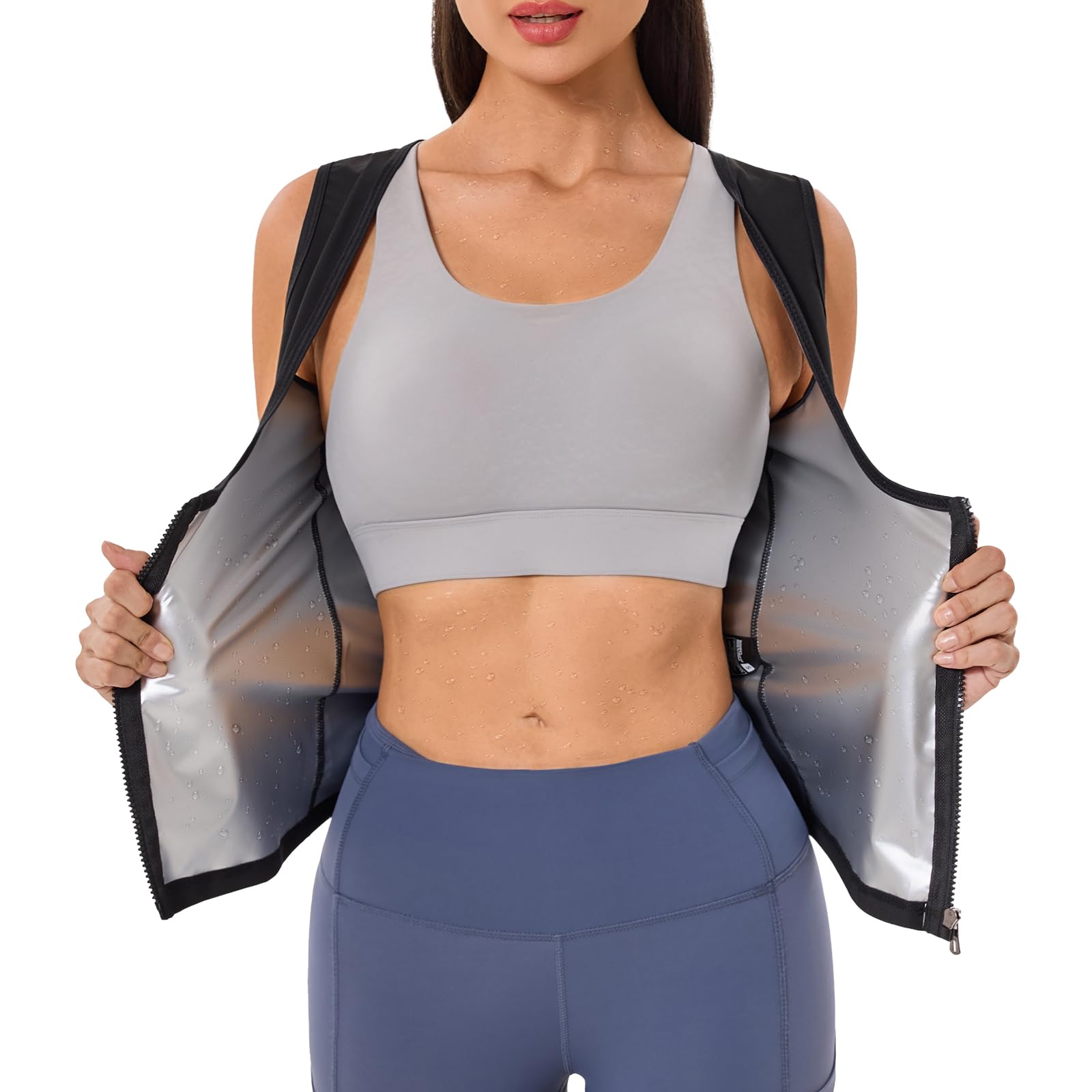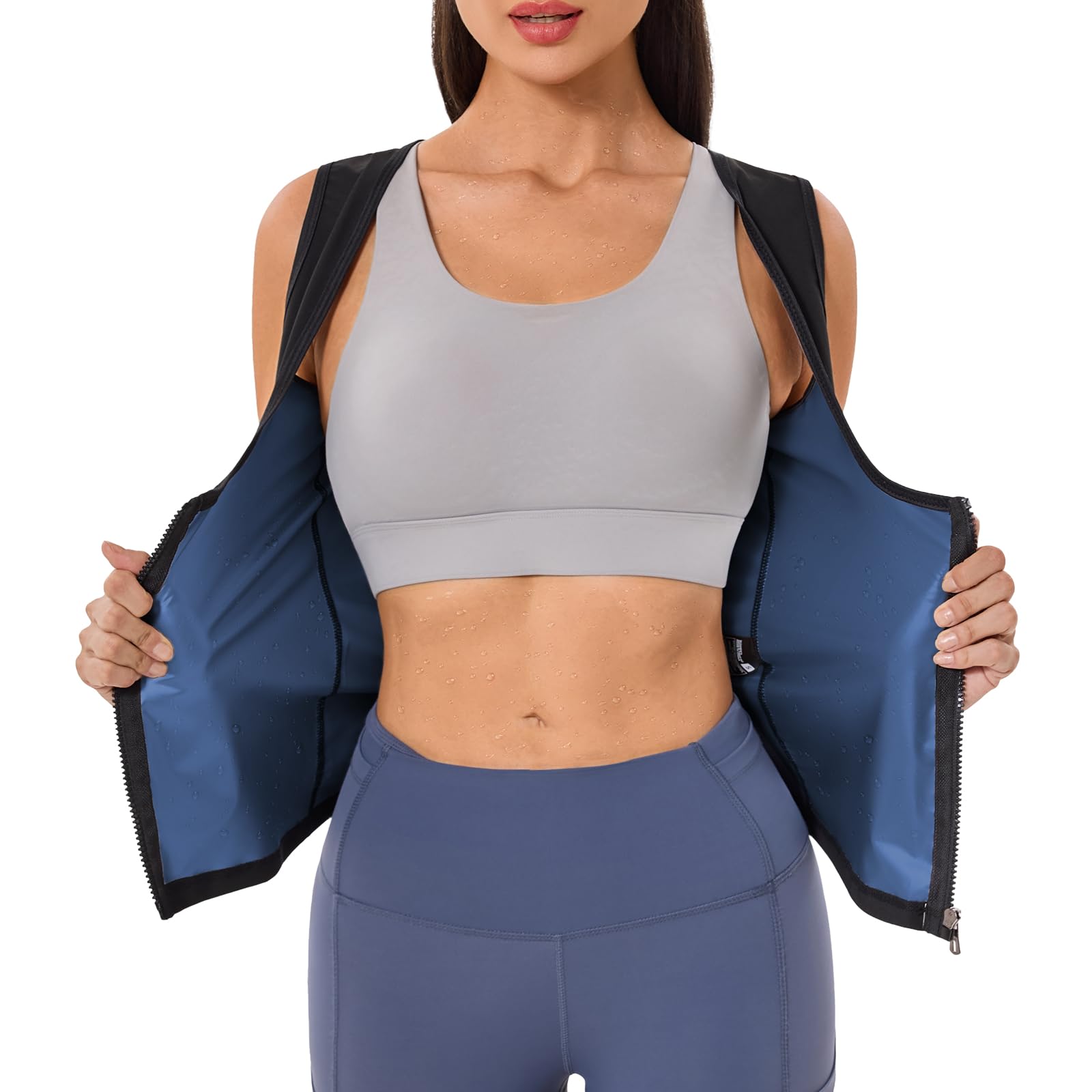 Sauna Suit for Women Weight Loss Sweat Vest Waist Trainer Workout Sleeveless Compression Tank Top Shaper with Zipper