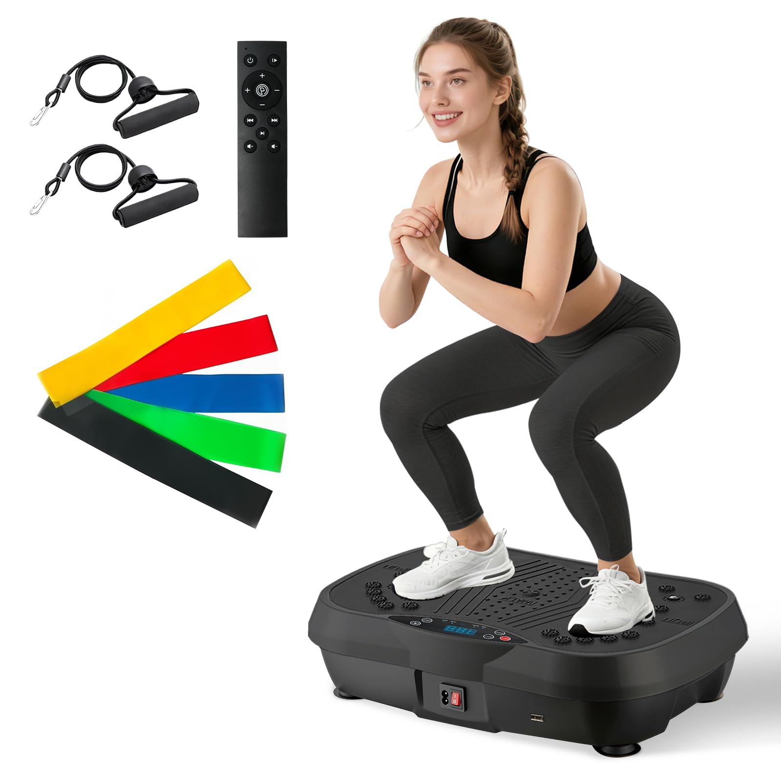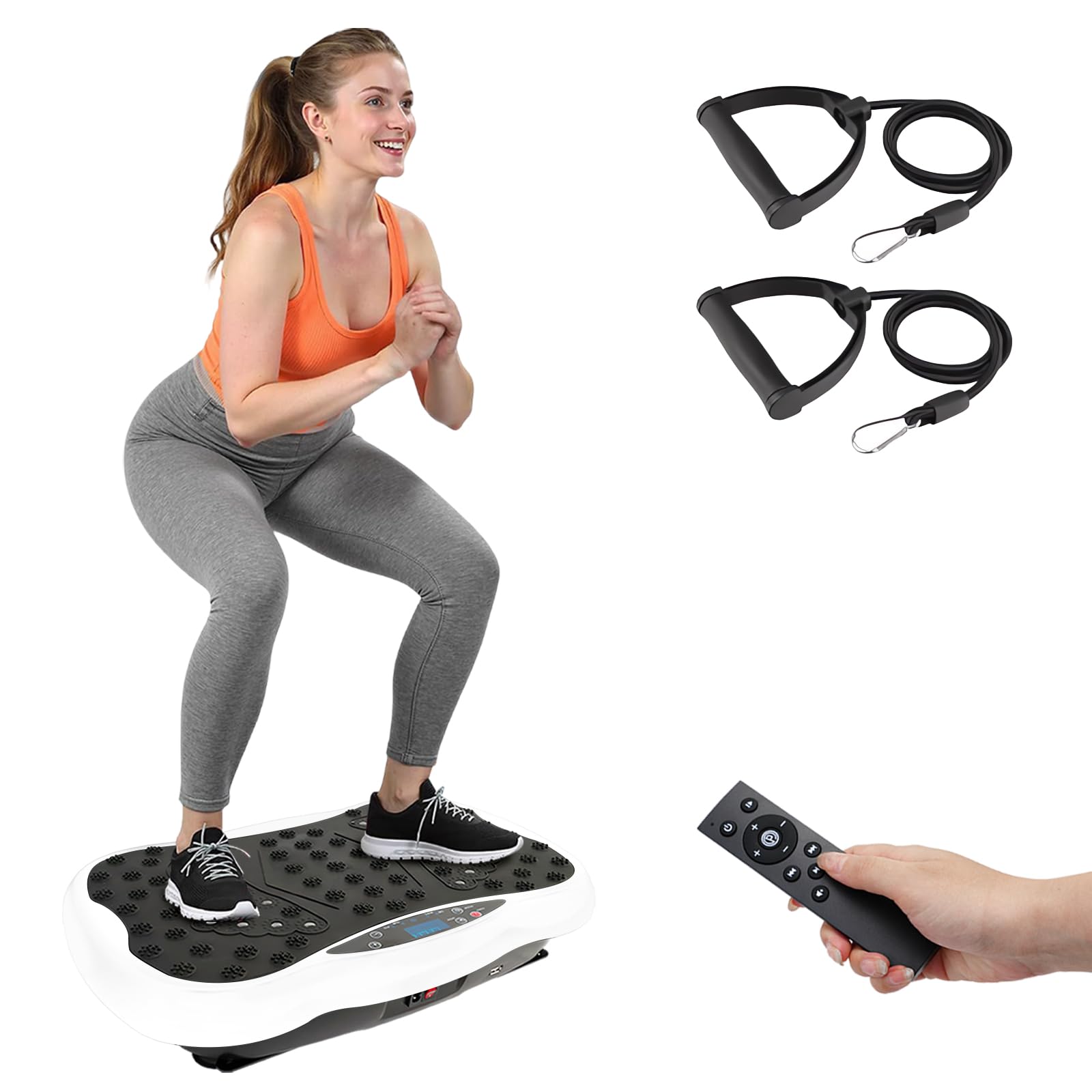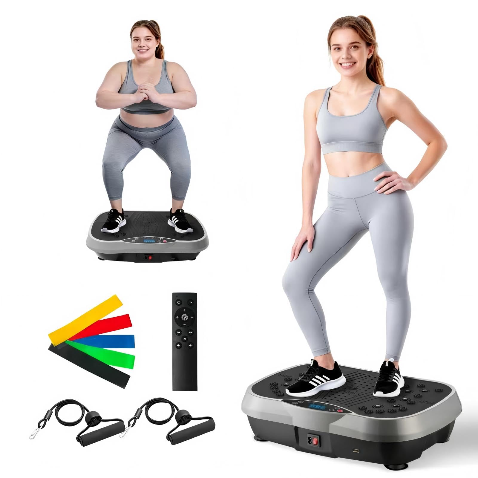 Whole Body Workout: Use this vibrating plate exercise machine for 10 minutes to exercise the muscles of different parts such as the abdomen, waist, back, legs, buttocks, and arms. The vibration plate for lymphatic drainage, helping to increase the body's metabolic rate and promote blood circulation and metabolism 200 Speed Levels & 10 Programs for Custom Workouts: The vibrating plate delivers powerful performance with a high-torque motor, offering 200 adjustable speeds and 10 targeted programs. Switch effortlessly from gentle warm-ups to intense sessions using the included remote control Smart LCD Display & Remote for Effortless Control: Track your progress in real-time on the digital display. The vibration board's remote lets you adjust intensity, set timers, and toggle modes instantly-no interruptions to your workout flow Multiple Experience: Connect your phone via Bluetooth to enjoy music, keeping your workout rhythm and relaxing. The vibration plate operates with low noise for a quiet and comfortable exercise environment. Its surface with magnetic stone design offers a soothing foot massage to relieve fatigue during workouts Premium Stability & Excellent Quality: Features four anti-slip suction cups for firm stability during workouts. Durable construction supports up to 400lbs. Safe vibration helps improve blood circulation, relax muscles and boost flexibility, offering effective whole-body wellness for all fitness levels