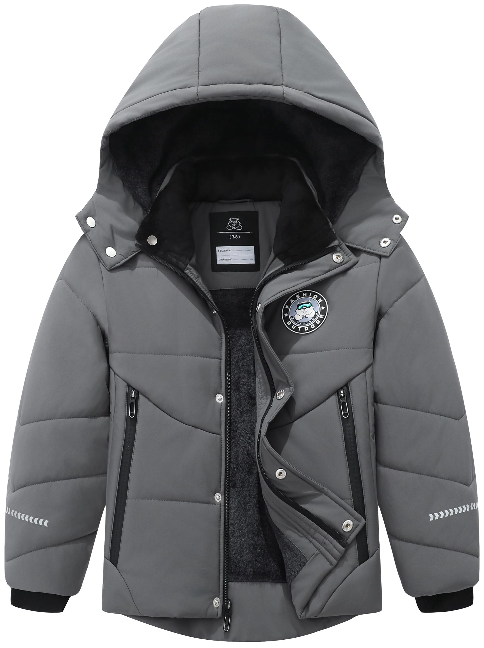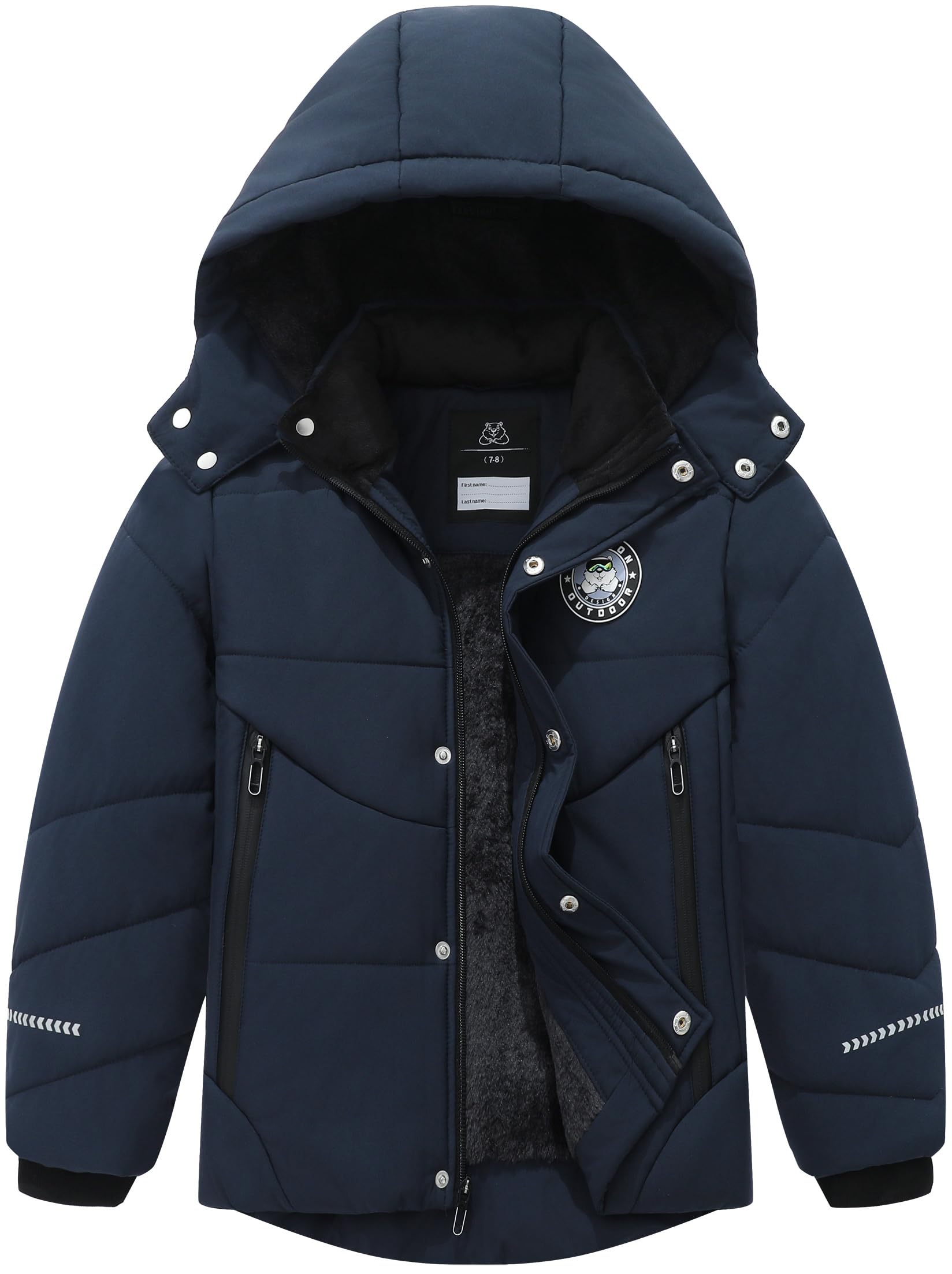 Boy's Winter Coat Waterproof Down Jacket Thickened Fleece Lined Parka with Detachable Hood Insulated Outerwear