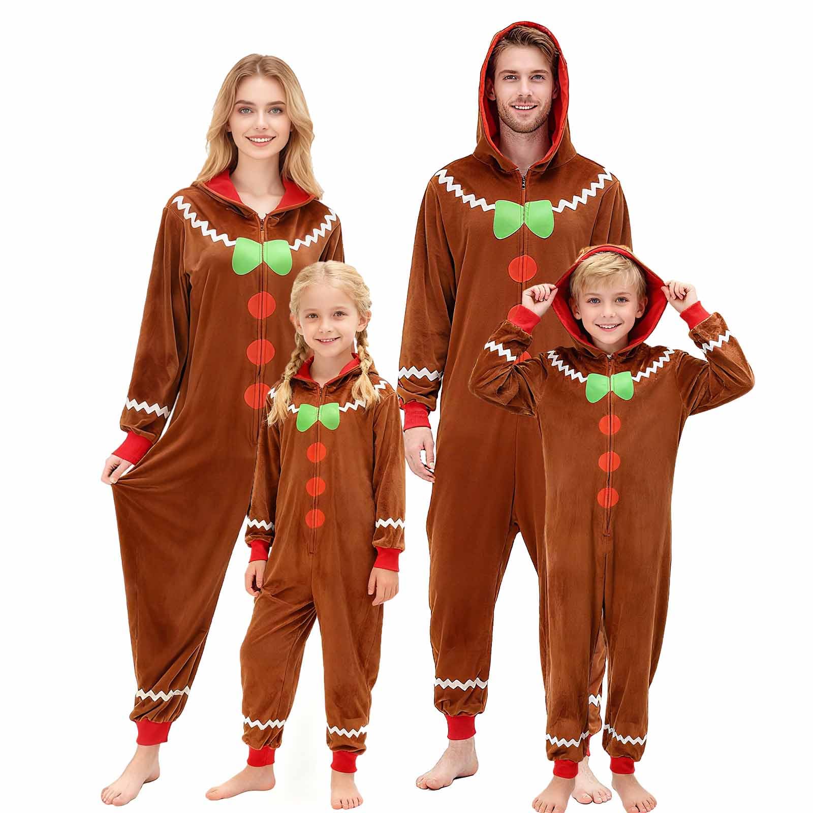Cute Gingerbread Pajamas: Brown facecloth one-piece pajamas with candy trim on the chest, white “frosting” piping, and red cuffs for a sweet and playful look Comfortable material: This gingerbread family pajamas are made of polyester fiber, which is soft and comfortable to touch, warm and breathable Made for the Whole Family: This christmas matching family pajamas set comes in sizes for everyone—so no one gets left out of the holiday fun. Whether you're snapping festive photos, opening presents, or cozying up for movie night, these coordinated PJs make every moment more memorable Occasions: Gingerbread onesie is the ideal costume for Halloween, theme parties, cosplay, Christmas, masquerade, Easter, New Year's parties, family gatherings and other events, and also a good choice for gifts A Sweet Gift for the Holidays Whether it’s Halloween or Christmas, these gingerbread family pajamas make a heartwarming gift for friends, couples, or loved ones. Share the joy and spread the cheer with a cozy surprise that’s as thoughtful as it is fun