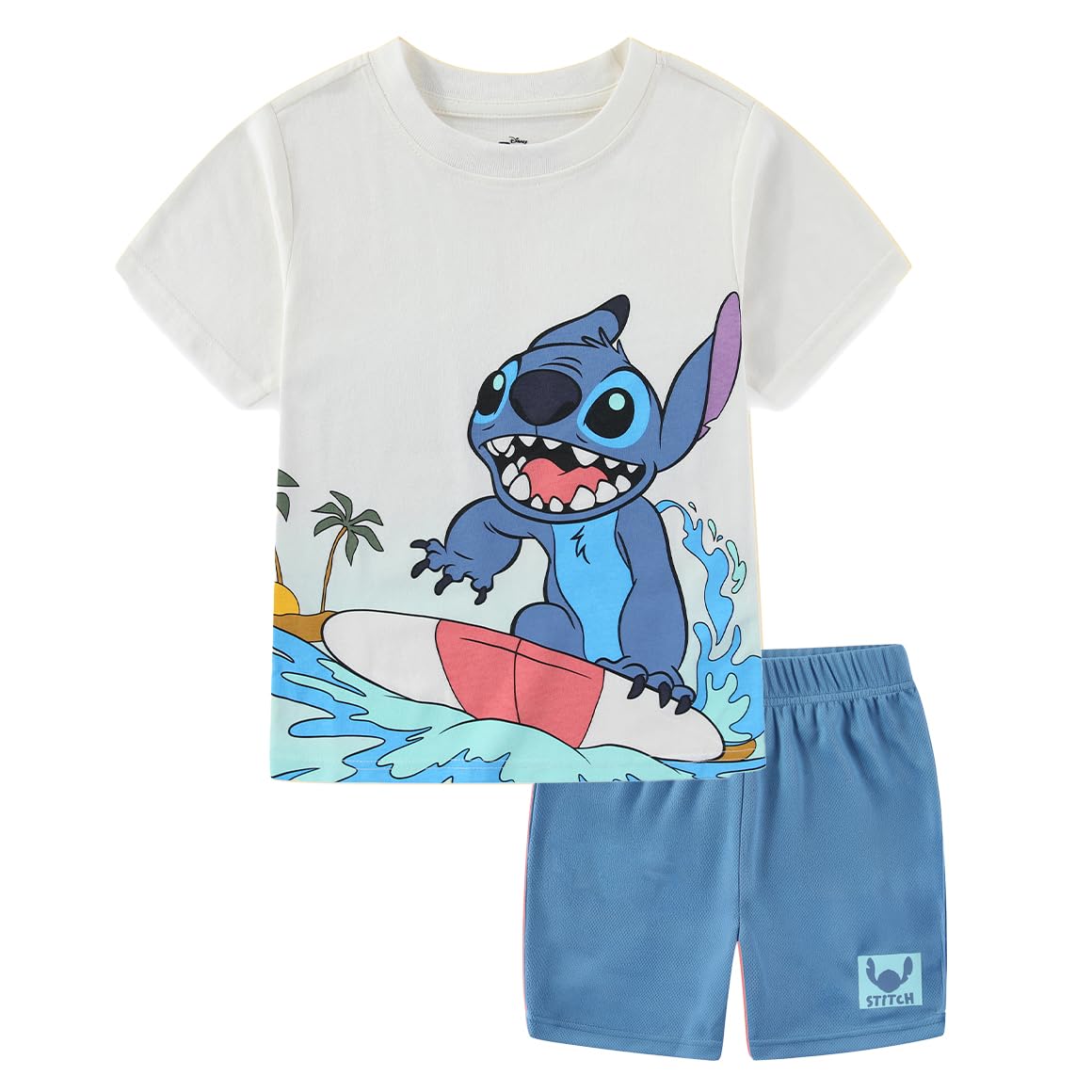 Officially Licensed Disney Lilo & Stitch Boys Short Sleeve T-Shirt and Mesh Shorts Set, a must have for fans of Disney boys clothing, boys character clothes, and Lilo & Stitch outfits. Dress your little adventurer in this 2 piece shorts set, featuring a cream graphic tee with Stitch print, paired with coordinating blue mesh shorts for a sporty, playful look your little one will love. Designed for little to big kids, it is available in clothing sizes 4, 5, 6, 7, 8, 10, and 12, showcasing a stretchy, comfortable waistband that allows freedom of movement, ensuring your child stays comfy while running, jumping, and exploring. Made with lightweight, high quality materials that keep your little hero cool and comfortable all day. Machine washable for easy care, ideal for playdates, school days, birthday parties, and everyday adventures. Great Disney Stitch outfit for your son, grandson, or nephew. Complete the look with Stitch shoes, Stitch socks, Stitch hoodie, Stitch backpack, or other Lilo & Stitch accessories for a full, themed outfit that little fans will love.