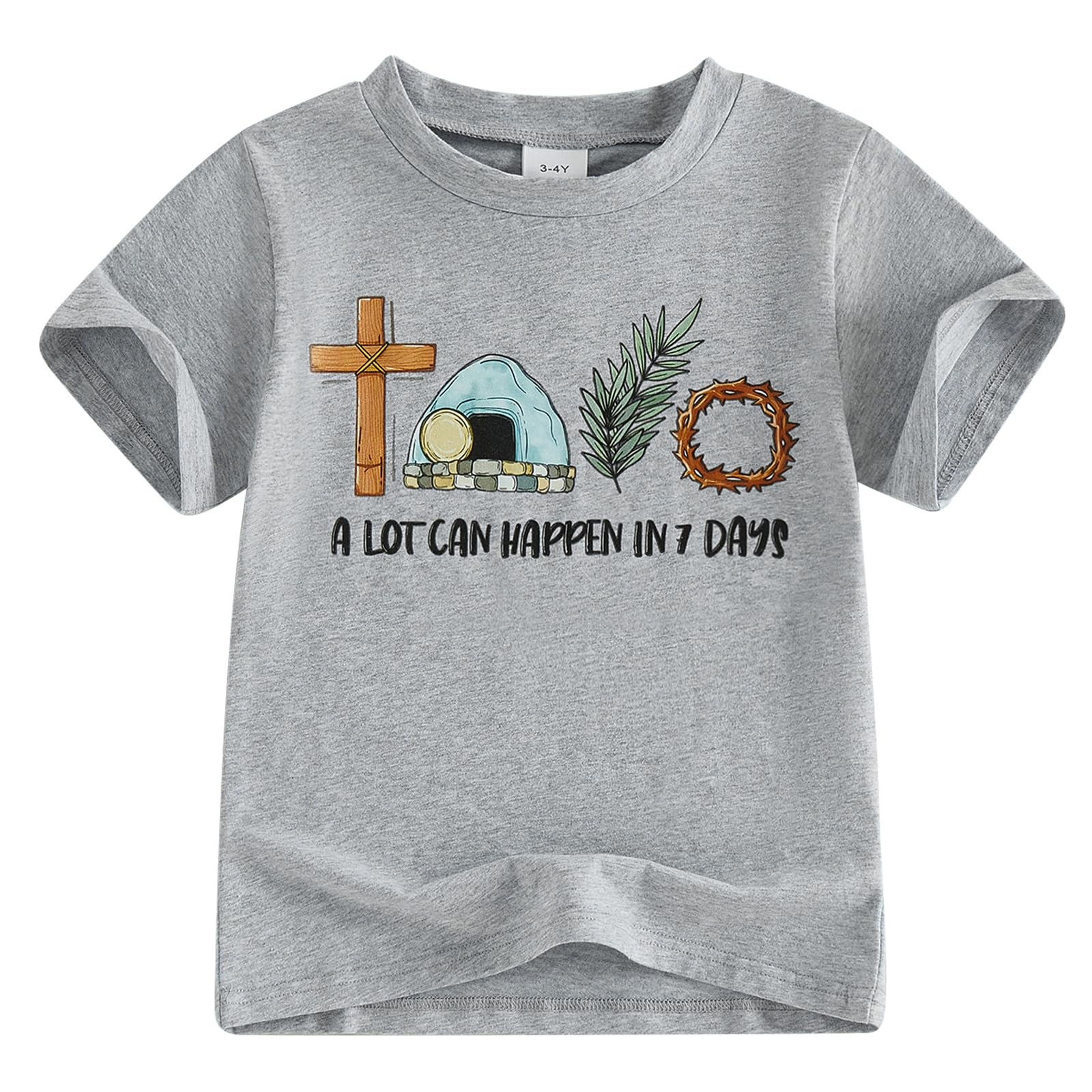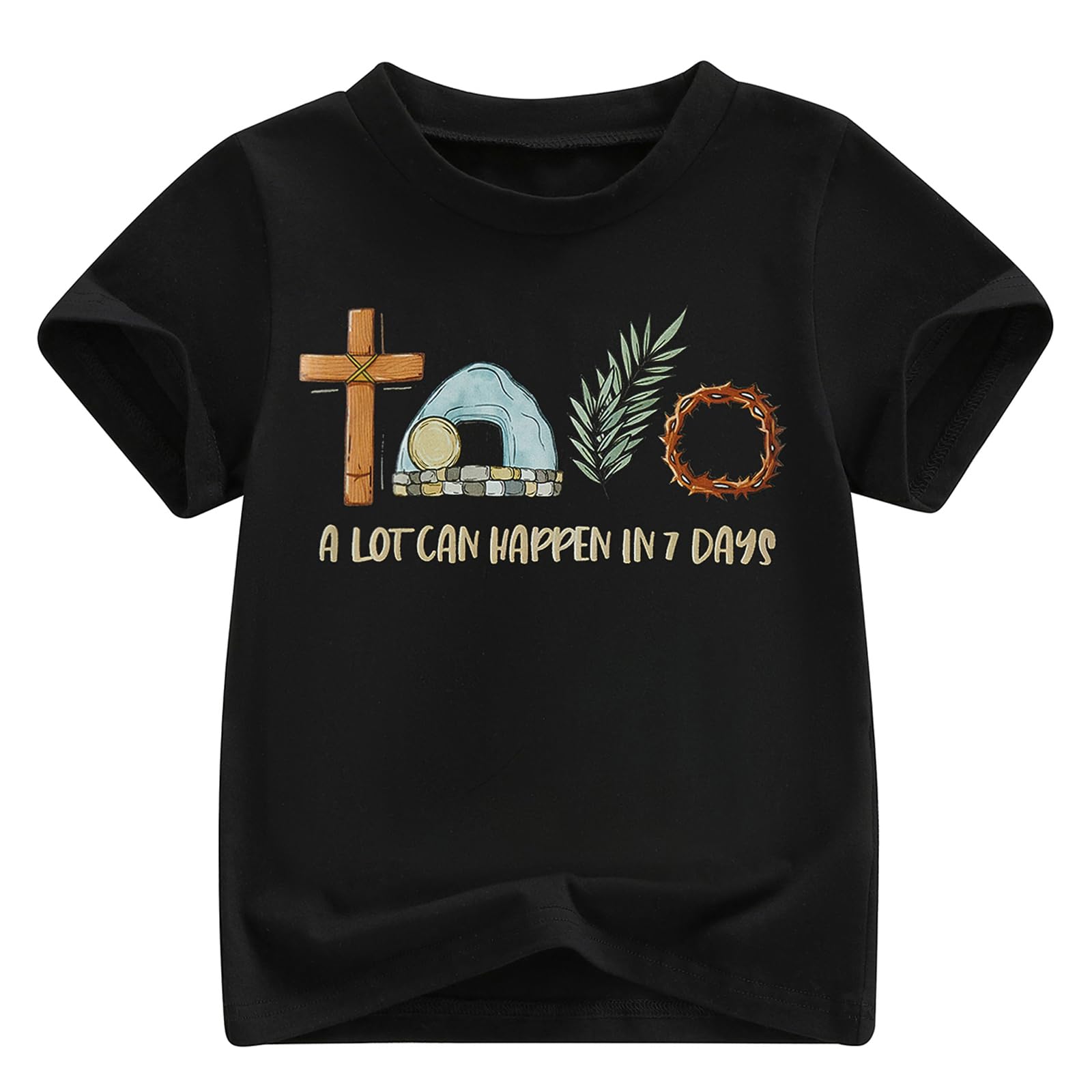 Kids Toddler Little Boys Easter Shirt A Lot Can Happen in 7 Days Christian Cross Print Religious T-Shirt