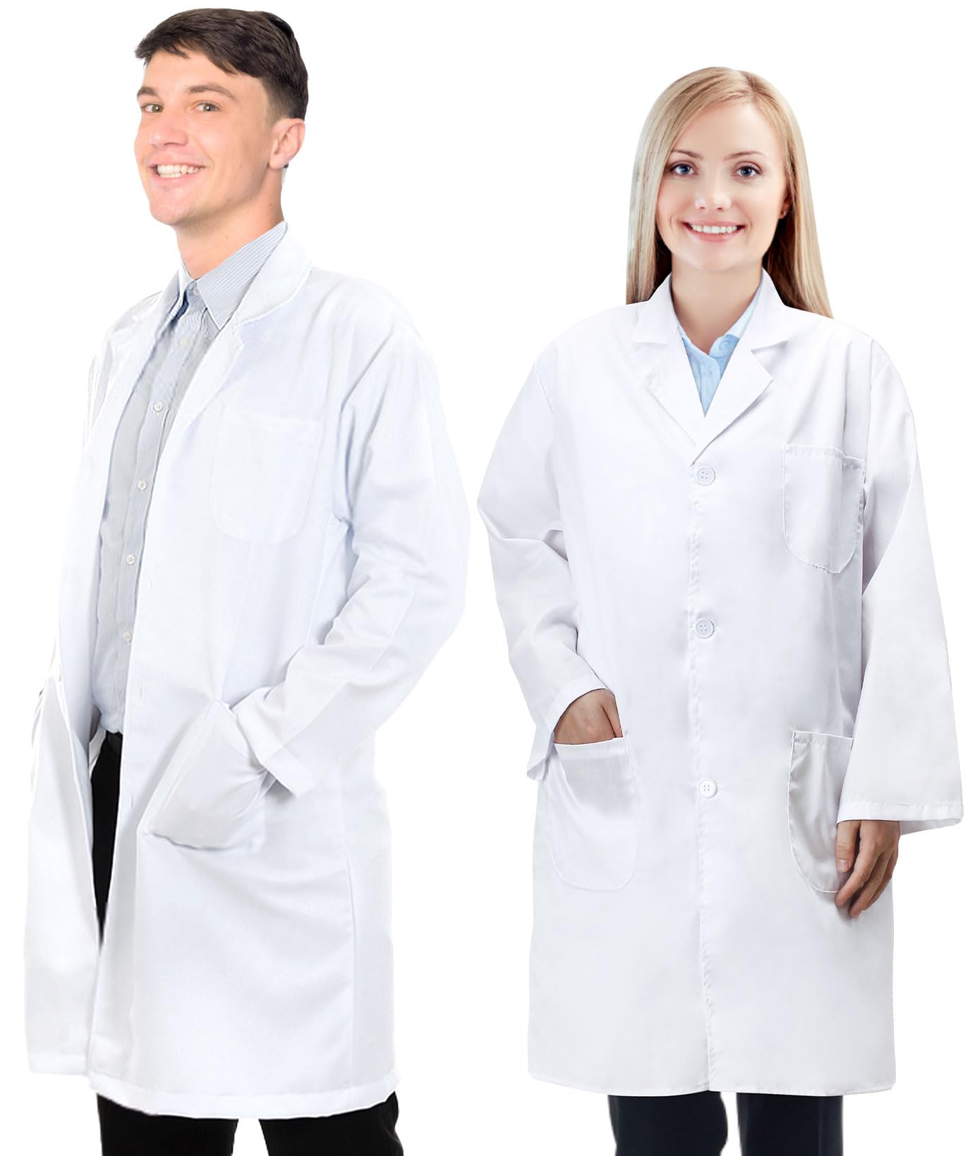 Professional & Stylish Design: Classic white lab coat with a unisex fit, great for doctors, scientists, chemists, or cosplay. The lab coat for men is tailored yet comfortable silhouette for a polished, professional look Premium Fabric: This lab coat for women is made from high-quality polyester, lightweight, breathable, and wrinkle-resistant. White lab coat ensuring comfortable wear. Easy to wash, and maintains shape after multiple wears Functional & Practical Features: This doctor costume includes 3 spacious pockets for pens, tools, or notebooks. Loose cuffs make operation convenient Versatile for Multiple Uses: Our lab coat costume is ideal for medical professionals, lab work, science fairs, Halloween costumes, or themed parties. A must-have for role-playing, cosplay, or academic presentations Size: Size runs small,recommend to buy a larger size,the XXXL size fits for 155-175 LB.Available in unisex sizes S-XXXL, with a size chart for accurate fitting,suit for adults teens