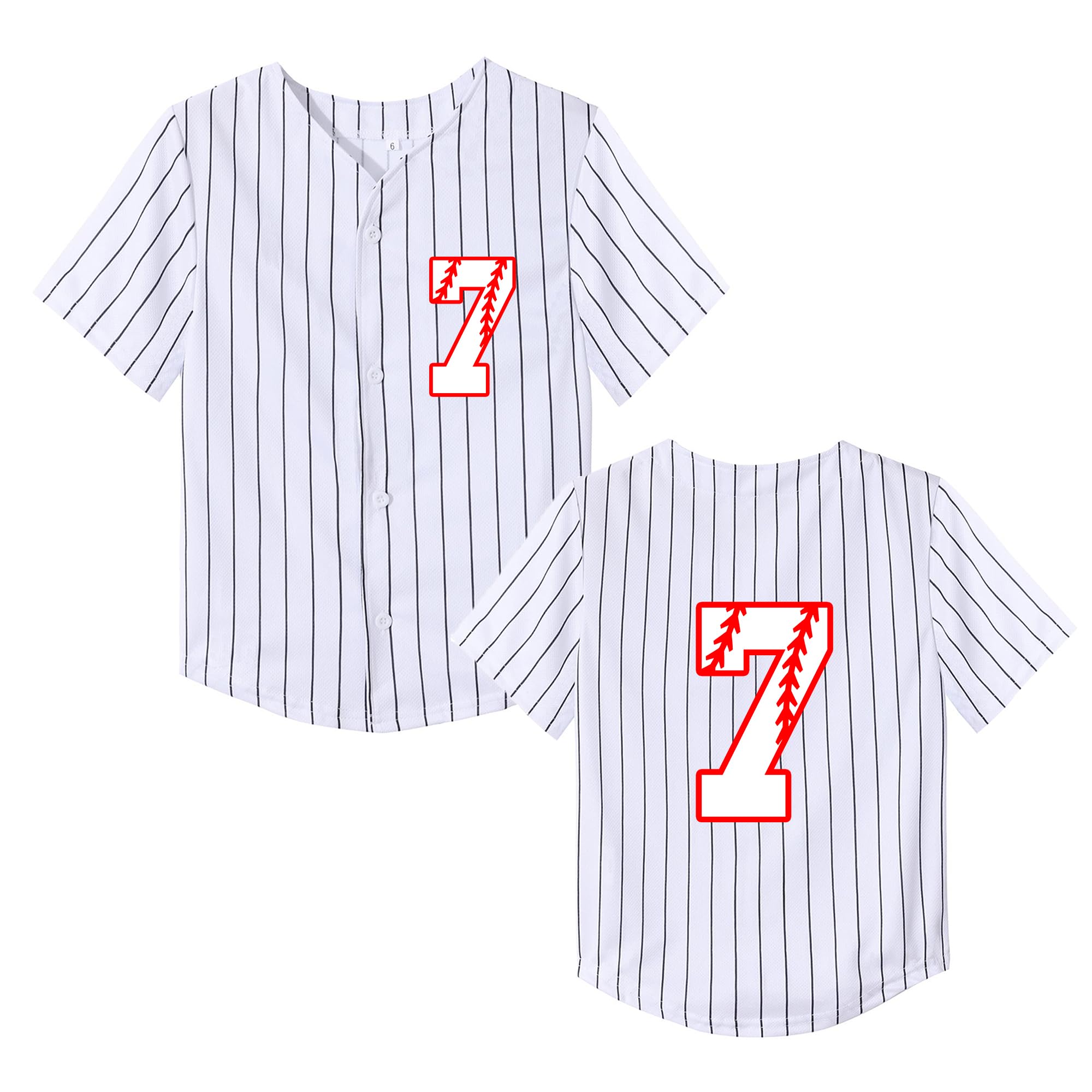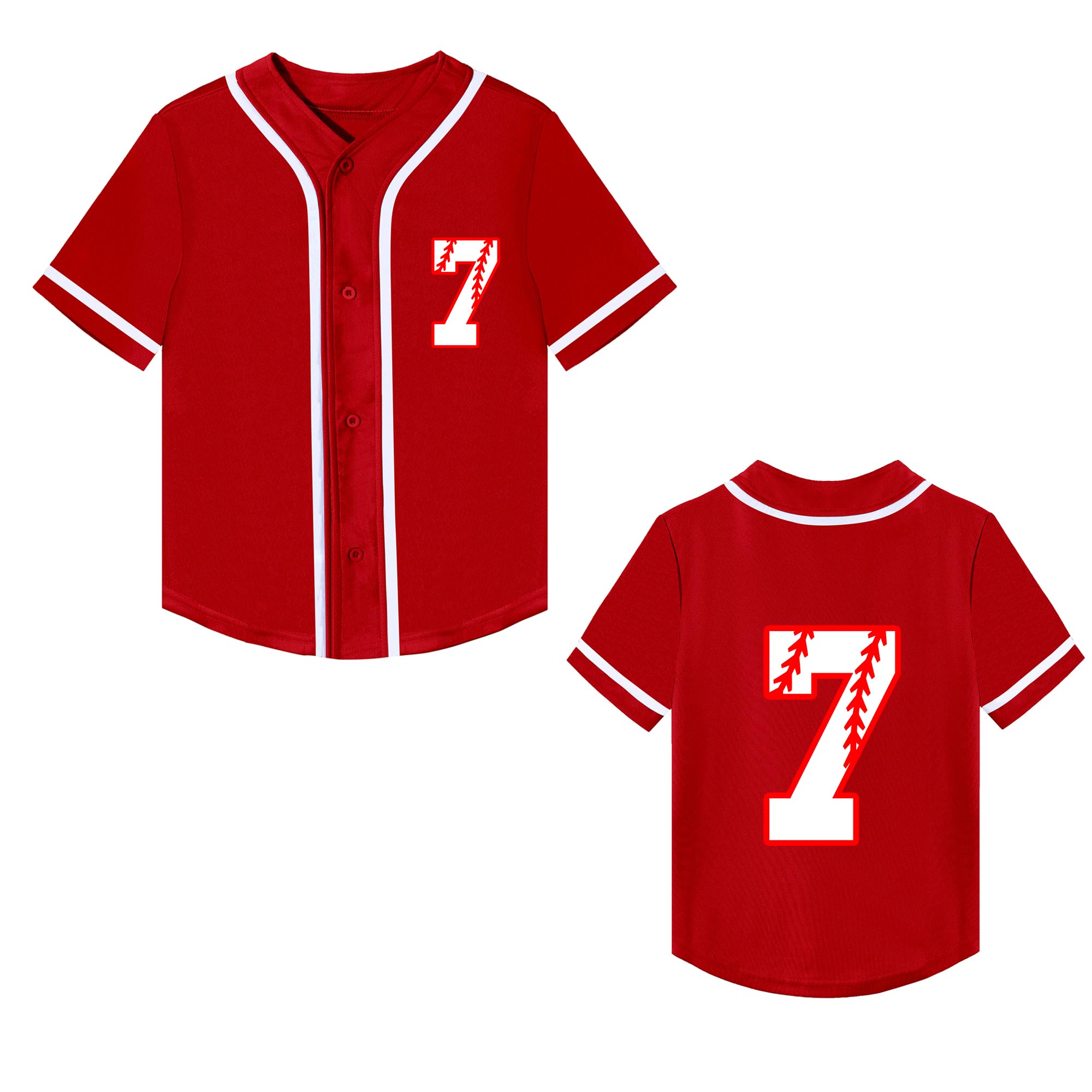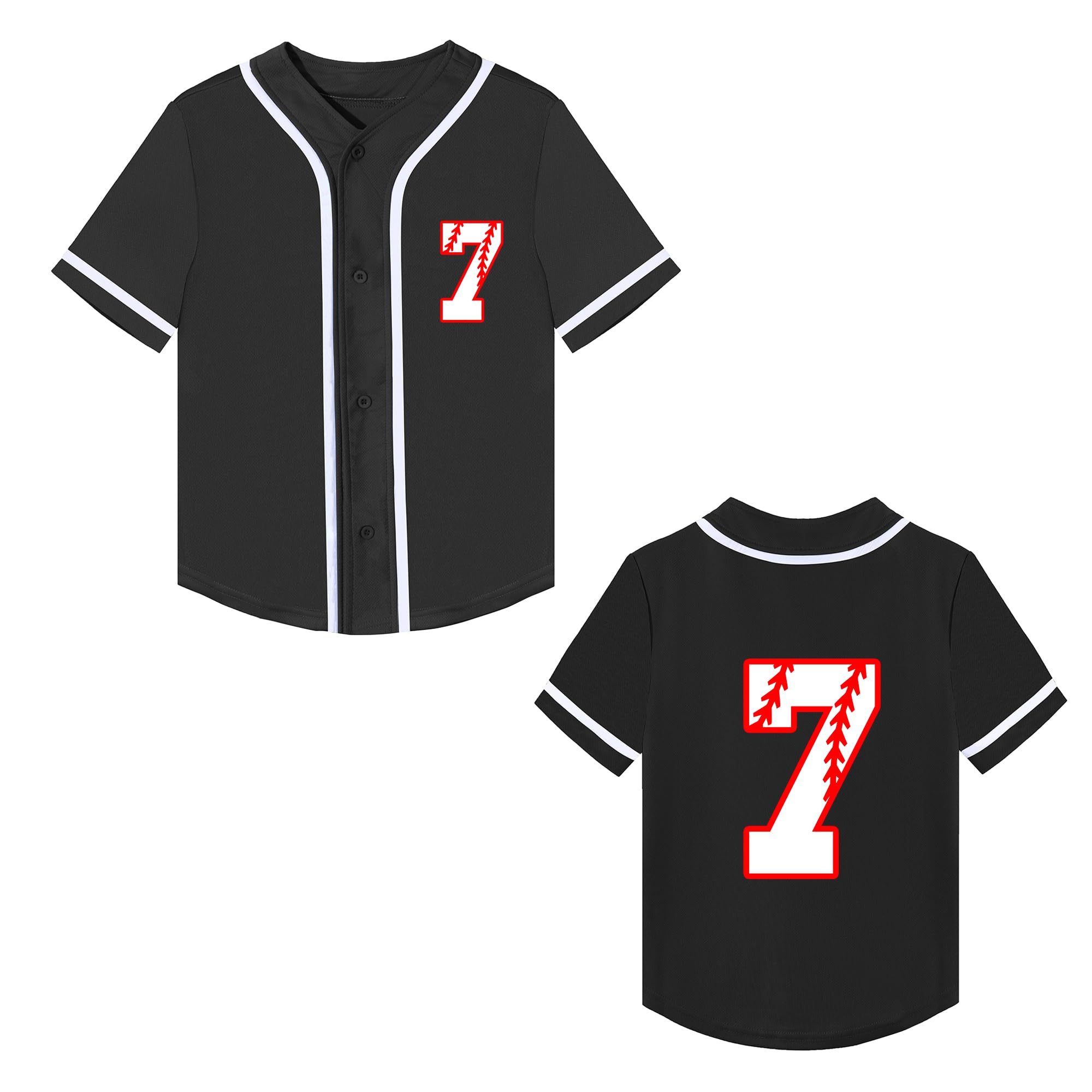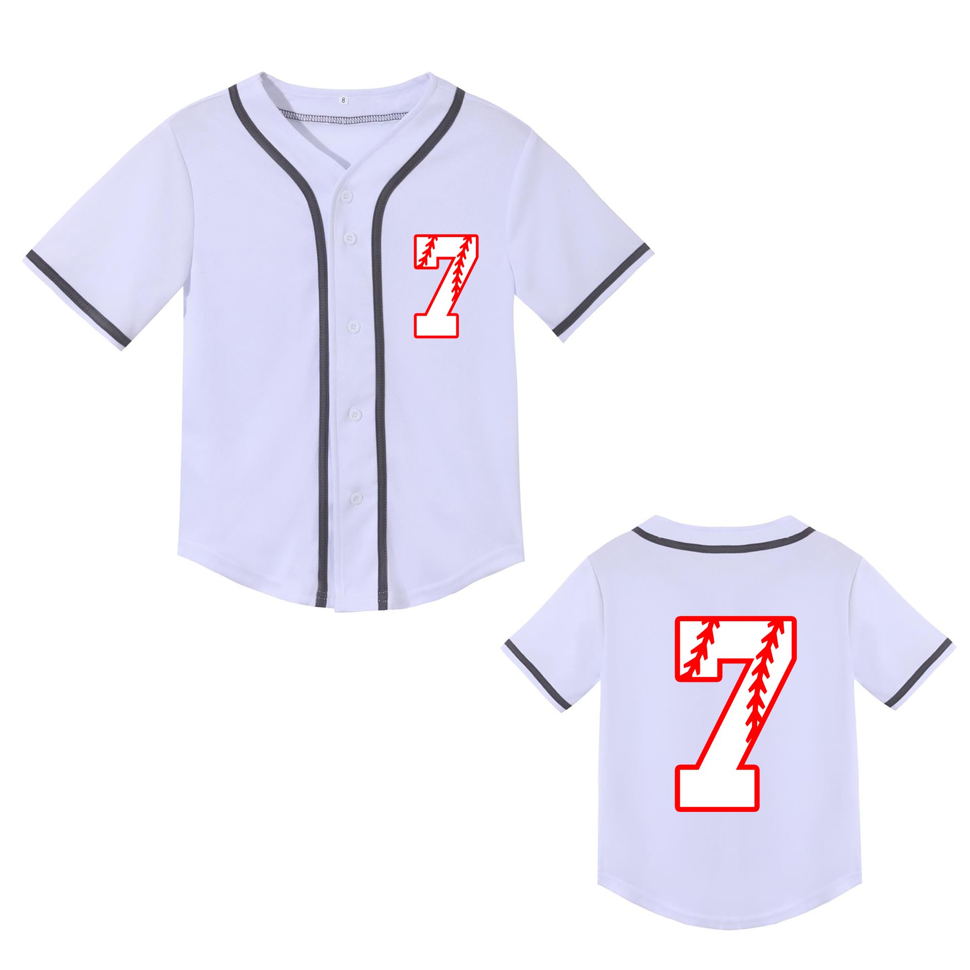 Kids Baseball Jersey Boys 7th Birthday Gift Print Number 7 T-Shirt Girls Trendy Hip Hop Button Short Sleeve Tops