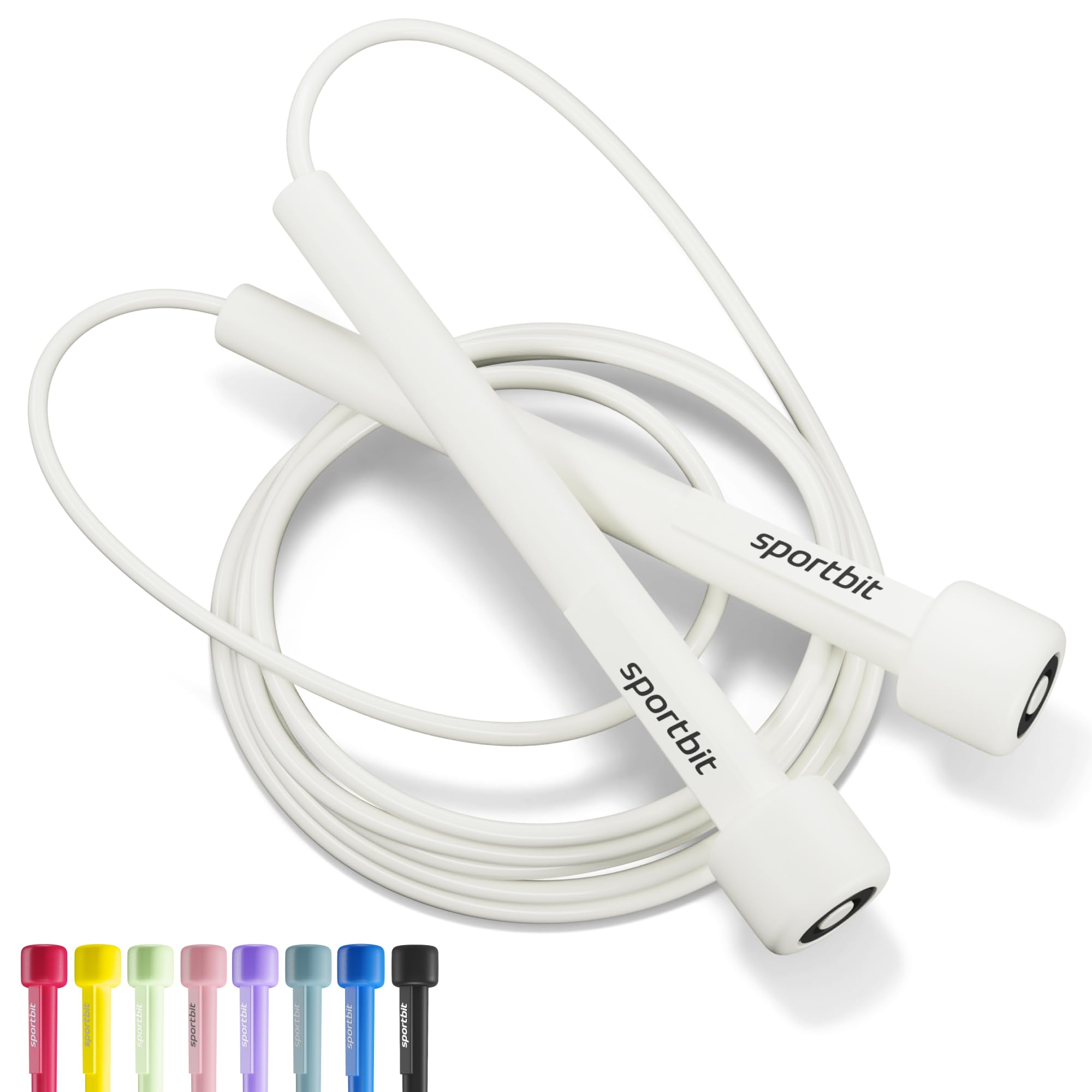 ADJUSTABLE: The SPORTBIT jump rope for fitness is easy to cut and customize. You can even use kitchen scissors when adjusting the size of your skipping rope. This jump rope for men, women, and is 118 inches long, so it’ll work for any height! Plus, no internal wires or metallic parts guarantees you safety and ease of use. FLEXIBLE AND DURABLE: This speed jump rope will not tear or break. The SPORTBIT jump rope was built to last. The handles spin a full 360 degrees. It’s perfect for both professionals and beginners. SWEAT-RESISTANT HANDLES: The ergonomically designed 4.8-inch long handles will fit adult hands. The handles on our jumping rope are easy to wash and non-slip. Plus, they have a 360° jumprope spin, ensuring smooth rotation. SPORT FITNESS: Use this workout jump rope in all your cardio and endurance training. This speed rope is good for burning calories, maximizing agility, functional trainings, leg training, and exercises. PERFECT FOR EVERYONE: This lightweight, portable exercise jump rope for women, men, and children is easy to hold and is designed to be the perfect sidekick during your workouts. Don’t forget to pack it for your next sporting event!