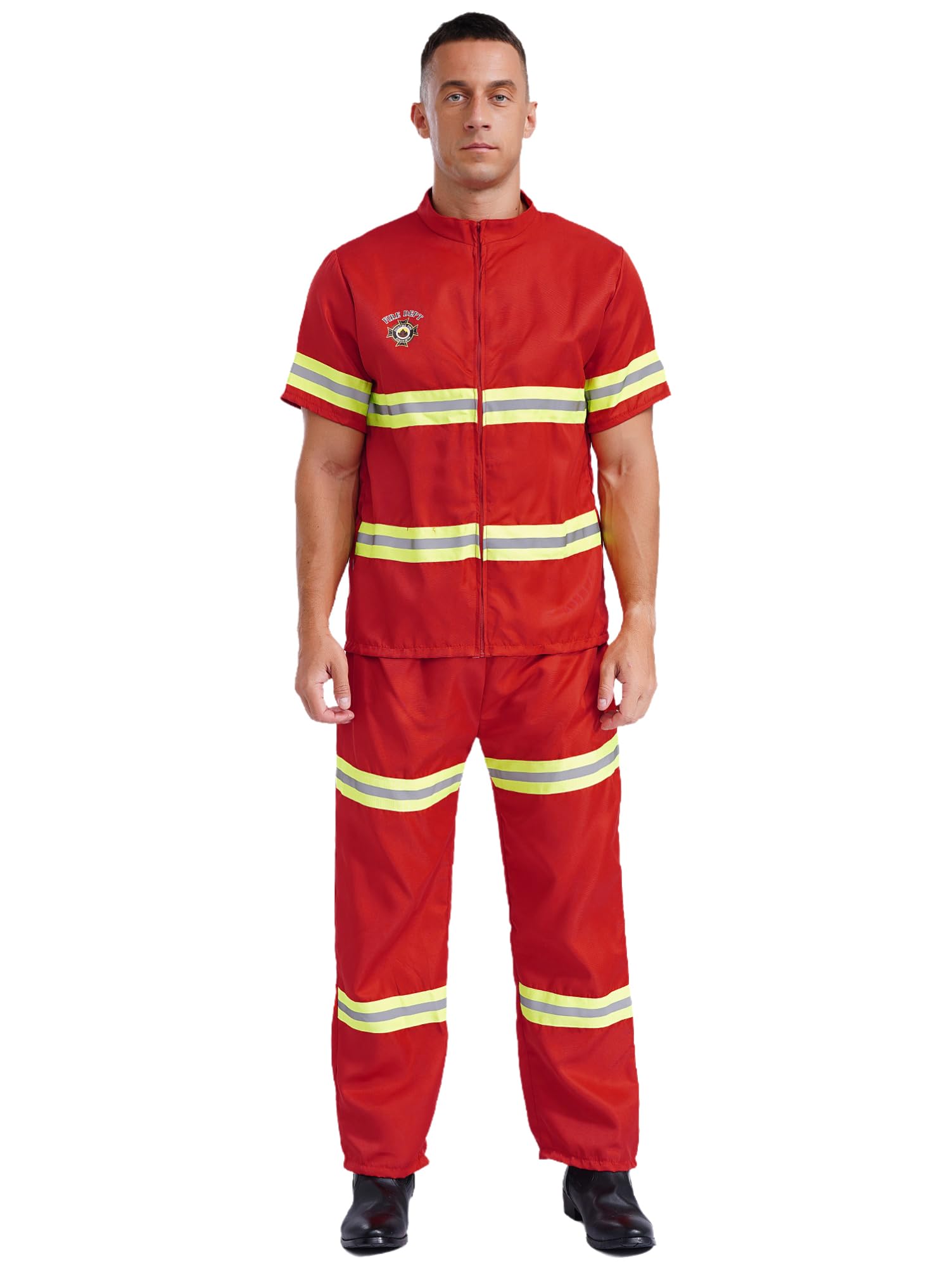 Mens Firefighter Costume Set Fireman Safety Workwear Uniform Adult Halloween Role Play Outfits