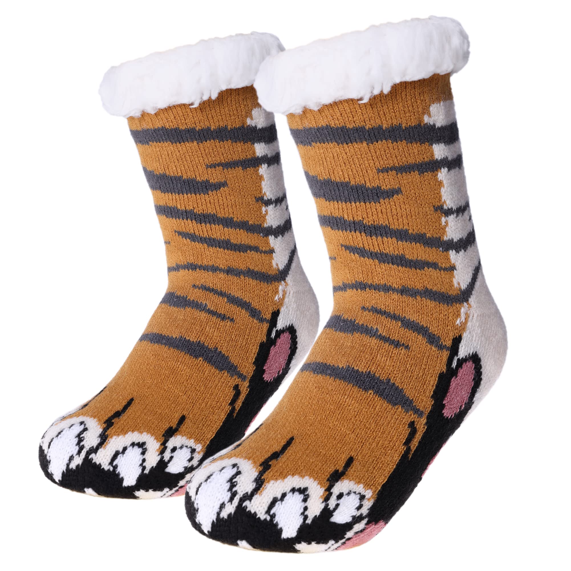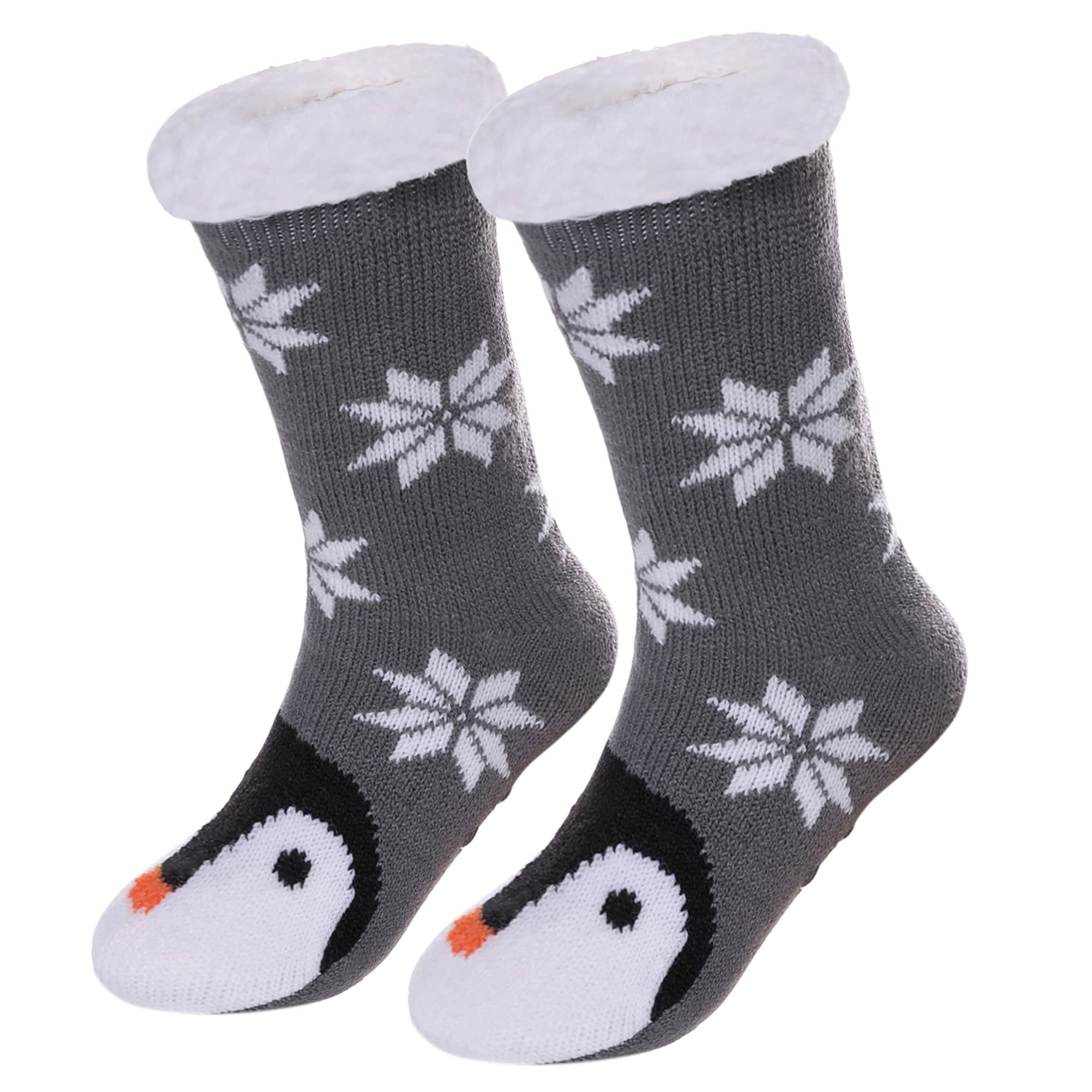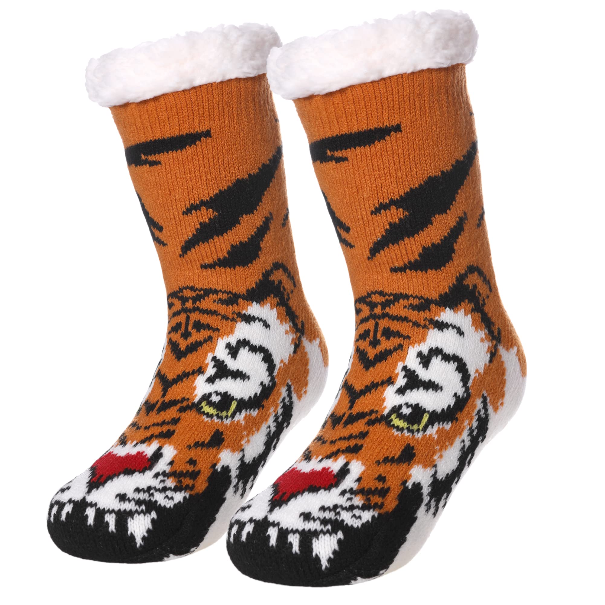HIGH QUALITY KIDS FUZZY SOCKS: Kids winter slippers socks are made of premium soft polyester blend, designed for maximum comfort, heat and coziness.Special fuzzy inner design of them will keep the feet warm, and soft fabric will keep your feet feel comfortable all the day. KIDS WARM SOCKS SIZE : Our socks for kids has 2 sizes. aged 4-7,aged 8-12.Very soft, comfort and stretchy. Suitable size make sure the elastic bands at the ankle do not compress their legs giving the little feet the best, comfortable wear experience. ANTI-SLIP DESIGN: Anti-slip gripper dots design at the bottom of socks will help keep your adorable kids safe, reducing the risk of falls & injuries and keeping them nice & warm & cozy.These boys girls slipper socks are perfect for your kids when playing around the house. FIT MANY OCCASIONS: Kids slipper socks The mutistyle and color can meet your daily occasion such as office, indoor, outdoor, in spring, fall, winter season or in any cold weather and snow areas! BEST GIFT OPTION: This cute fuzzy socks are perfect presents for kids.You can choose it as your or your friend's son, the daughter's birthday or Christmas gift.They will be thinking of you every time they will be feeling warm and bliss from these cozy socks.
