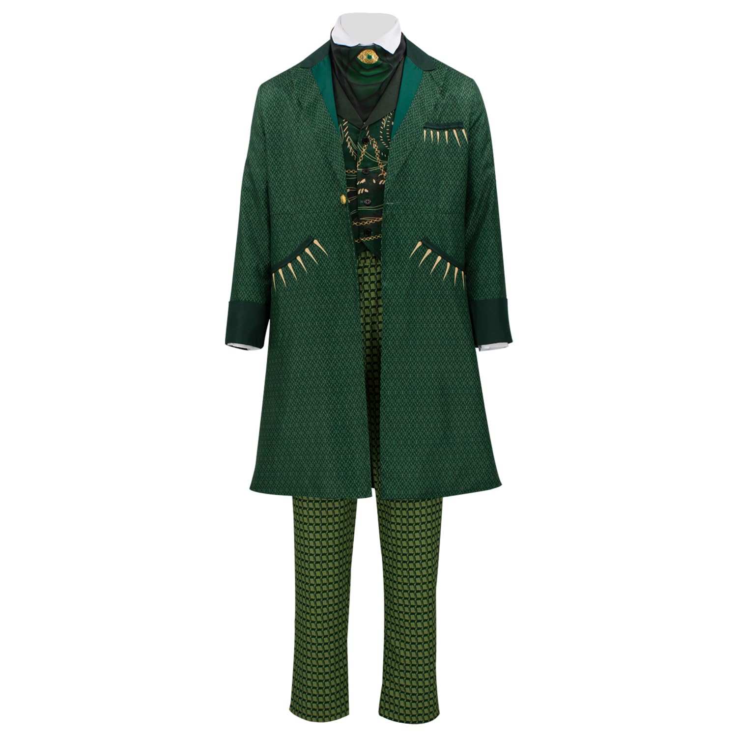 Men Wizard Costume Full Set Coat Cravat Checkered Pants Halloween Party Dress Up Outfit Emerald Green