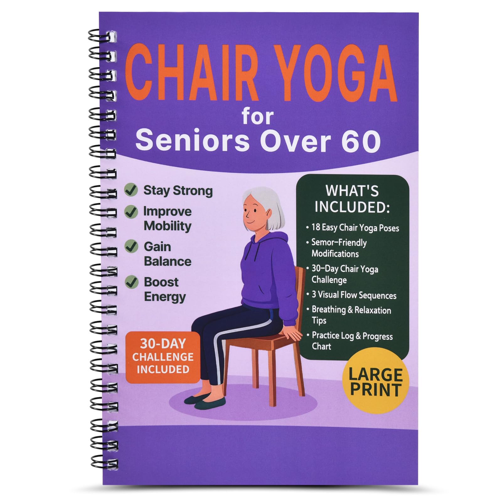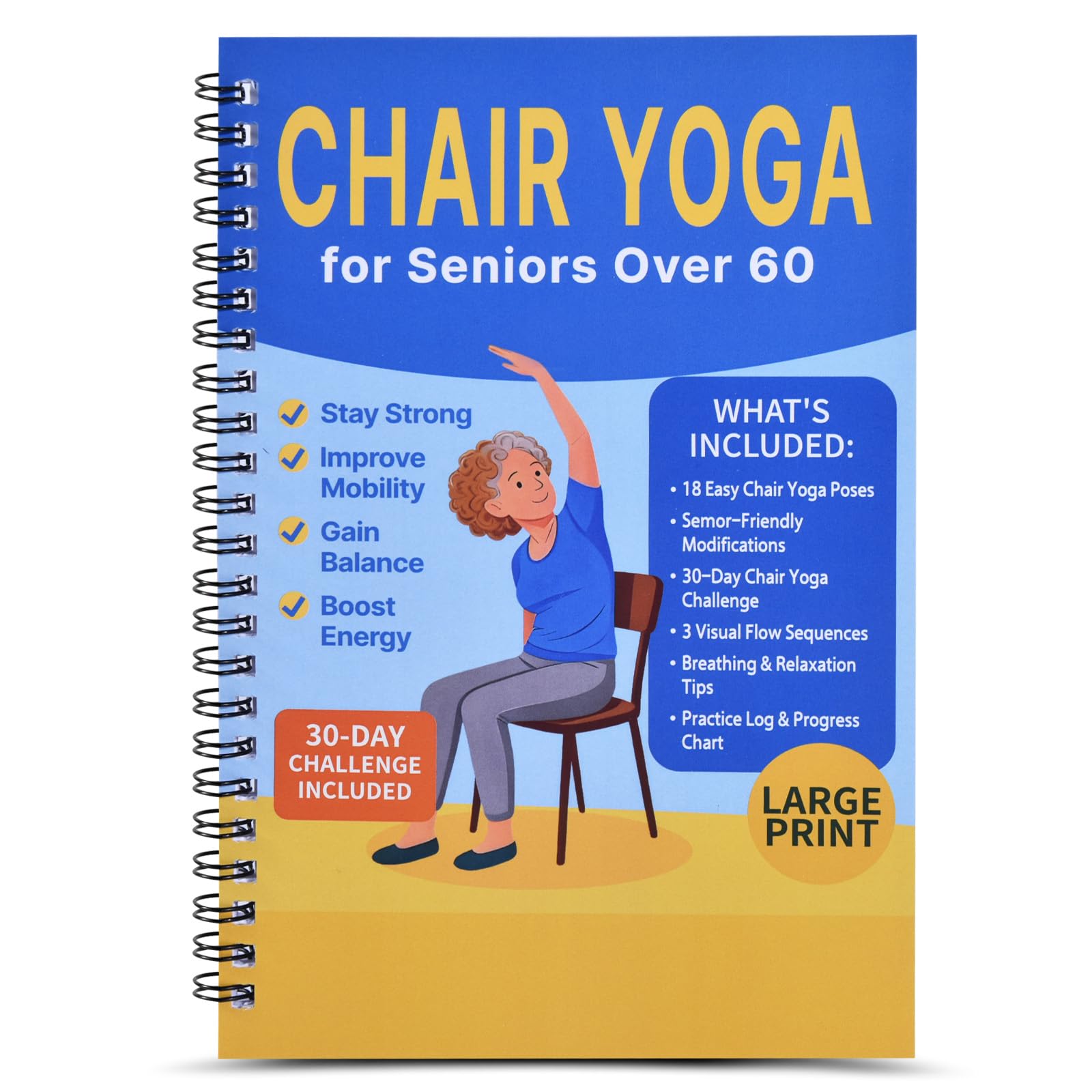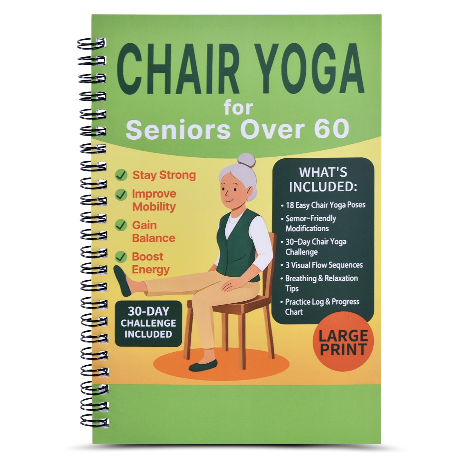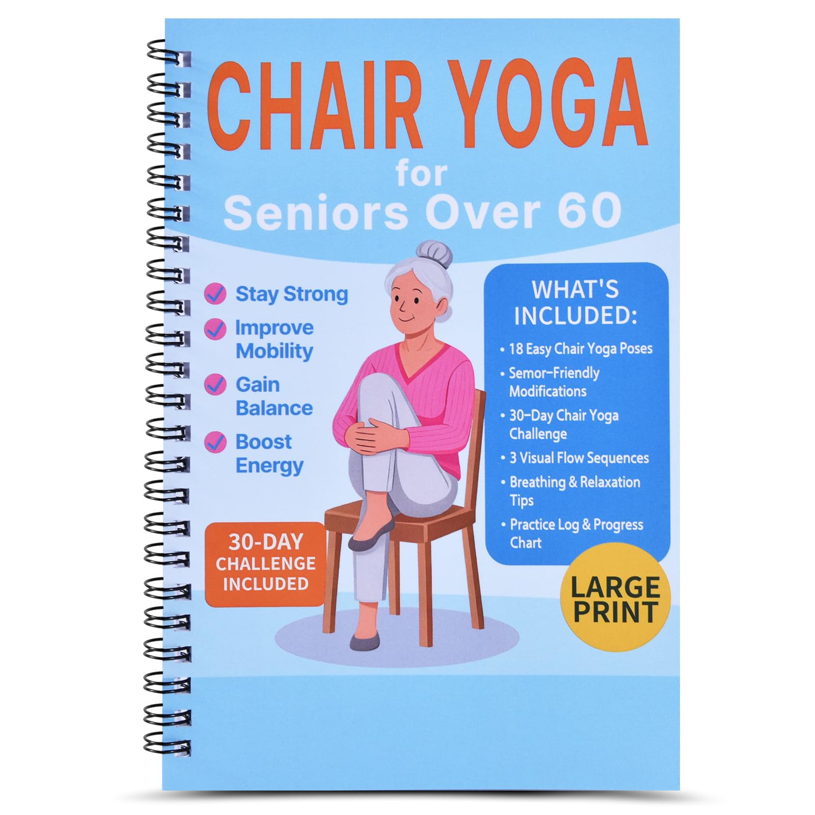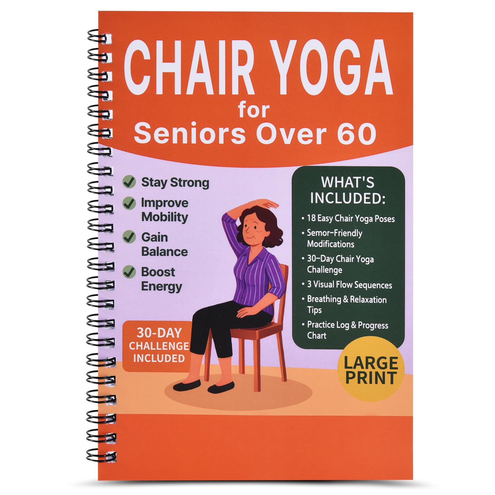 Gentle Chair Yoga for Seniors Over 60 : Designed specifically for seniors and elderly adults, this chair yoga guide offers 18 easy-to-follow seated poses with step-by-step instructions, clear benefits, and senior-friendly modifications for safe practice at home 30-Day Chair Yoga Challenge & Progress Charts : Stay motivated with a comprehensive 28-day chair yoga chart, a printable workout plan, and a daily progress tracker—ideal for seniors of all levels, helping improve flexibility, balance, and mobility while encouraging consistent practice Strength, Flexibility & Balance : This book features three guided chair yoga flow sequences, a practice log, and relaxation tips, all focused on enhancing strength, balance, and flexibility with low-impact exercises—perfect for seniors over 60 who want to improve movement without floor work Chair Yoga for Weight Loss & Wellness : A dedicated 28-day weight loss challenge within the guide promotes improved posture, breathing, and energy. This low-impact yoga plan supports healthy aging, helps manage weight, and promotes overall wellness Premium Quality & Durable Design : Printed on 100 GSM no-bleed paper with a waterproof PVC cover, this high-quality book is designed to withstand regular use. Sized at 8.5x11", it’s an ideal gift for seniors, helping them stay strong, flexible, and independent for years to come