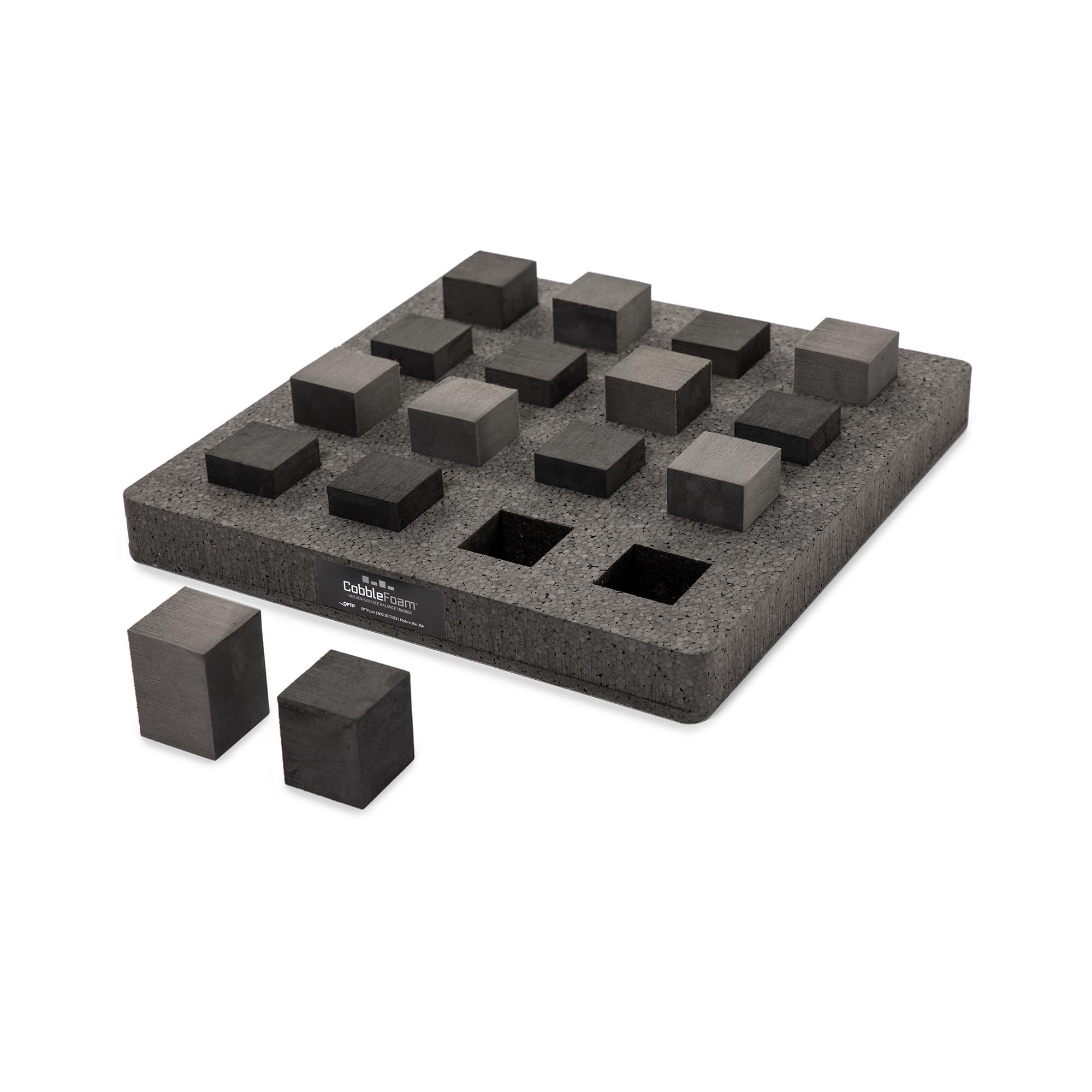 Safely and Effectively Improve Balance: Each balance board simulates walking on natural, uneven terrain to help improve balance safely and effectively while in the clinic or at home. Ideal for Rehabilitation, Balance Training, Sports Training: These balance boards can help individuals recovering from injury or surgery, geriatric patients, athletes and everyone in between. Progressive: Perform basic to advanced movements from walking, hopping, marching, lunging, static balance exercises, gait training and more aggressive athletic training exercises to rehabilitate the lower extremities, improve balance and improve sports performance. Customizable: Use one board individually or purchase multiple boards (this product is also sold as a set) to form a walkway; incorporate additional elements (not included) such as balance pads, hurdles and more, to create an obstacle course for a more dynamic balance challenge. Professional Grade Materials: Each Board is constructed of a 16” x 16” EVA foam base with a non-slip bottom and includes 16 durable foam blocks (8 short, 8 tall) that can be moved to form different patterns to vary challenge level. Comes in a sturdy carrying bag. Made in the USA.