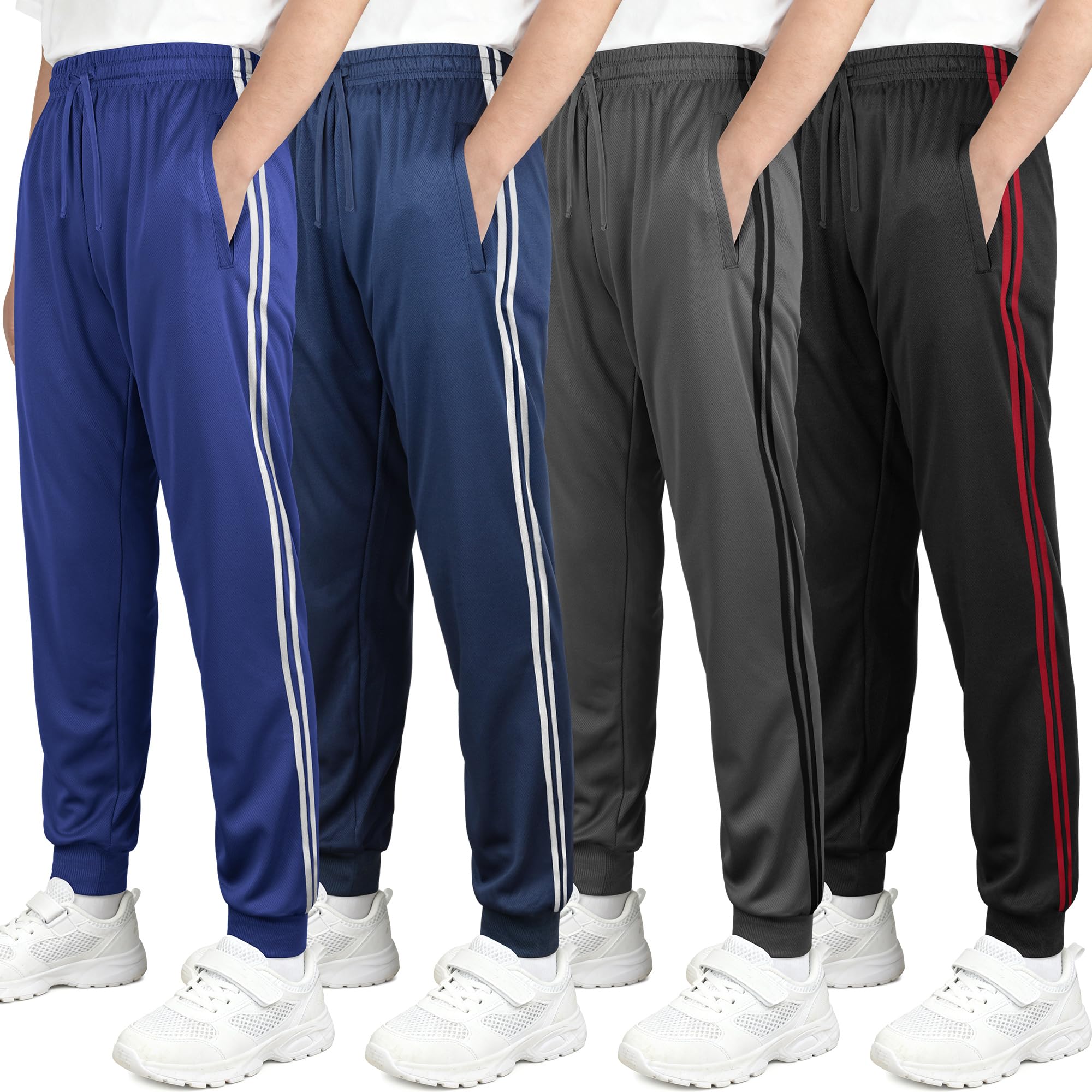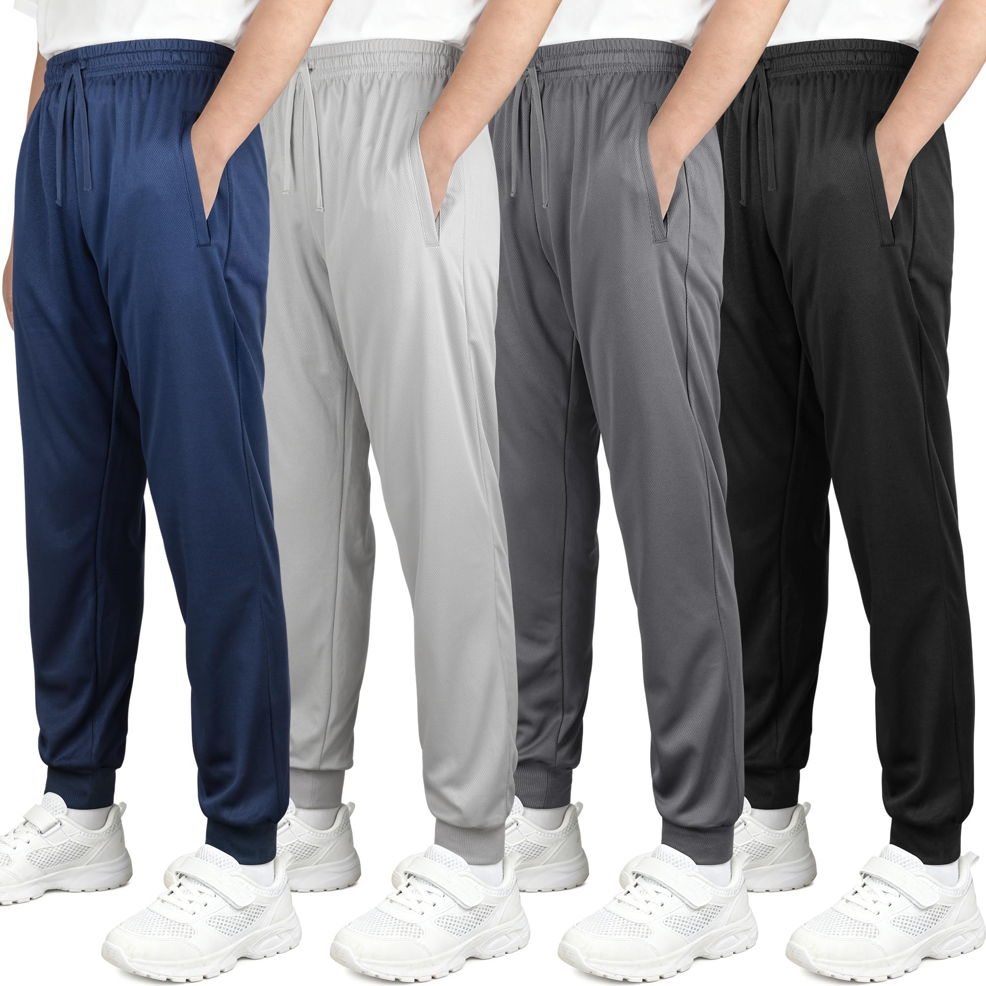 4 Pack Boys Mesh Joggers, Lightweight Athletic Pants with Pockets and Drawstring